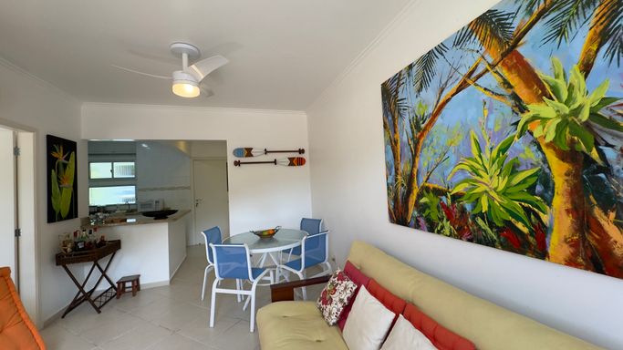 Apartamento em oportunidade R$ 545.000,00 Praia das Toninhas Ubatuba, 2 Quartos sendo 1 suíte com armários, ventiladores de teto e ar condicionados, sala em 2 ambientes ventiladores de teto e ar condicionado, banheiro social, cozinha americana com armários, área de serviço. Moveis da Tok&Stok. Condomínio com zeladoria, elevador, churrasqueira coletiva, armário náutico, sala de jogos e garagem