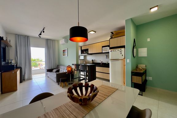 APARTAMENTO À VENDA NOVO Uma Suíte com ar condicionado, banheiro com box e armários, sala integrada com a cozinha com armários e ar condicionado, sacada e churrasqueira. Condomínio e lazer: Academia, Salão de Jogos, Salão de Festa, Piscina, Playground, Área Gourmet, Elevadores (2), Portaria 24h