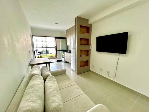 APARTAMENTO À VENDA NOVO Uma Suíte com ar condicionado, banheiro com box e armários, sala integrada com a cozinha com armários e ar condicionado, sacada e churrasqueira. Condomínio e lazer: Academia, Salão de Jogos, Salão de Festa, Piscina, Playground, Área Gourmet, Elevadores (2), Portaria 24h