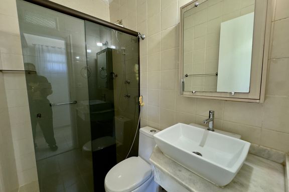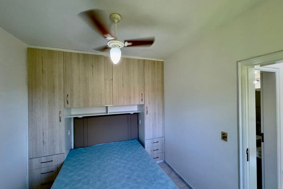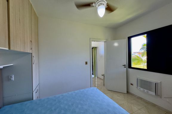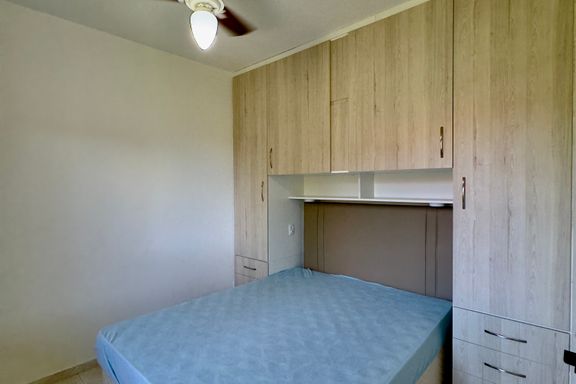 Localizado no quarto andar, bloco com elevador, vista linda para o jardim, sacada com churrasqueira, cozinha com armários, sala em 2 ambientes, área de serviço, banheiro social, quarto com armários, ar condicionado e ventilador de teto.