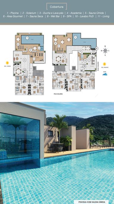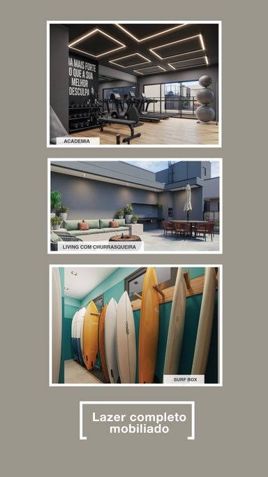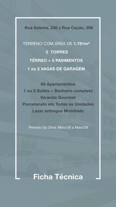 Plantas Modernas, 65 Apartamentos com 1 ou 2 suítes de 45 a 70m2, varanda gourmet, porcelanato em todas as unidades, lazer mobiliado com piscina, academia, espaço gourmet, spa, sauna seca, surfbox, solarium e muito mais.