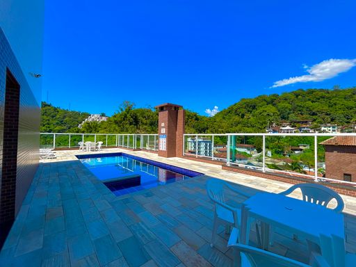 Apartamento à venda Praia das Toninhas, Mobiliado, 2 quartos sendo 1 suíte com armários e ar condicionado, sala ampla em 2 ambientes, sacada com churrasqueira, cozinha americana com armários planejado.