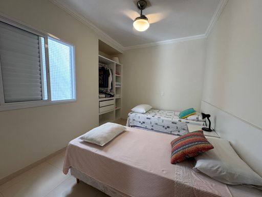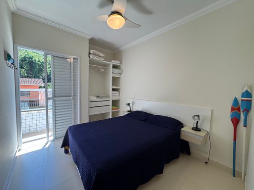 2 quartos bem arejados, sendo 1 suíte. Equipado com armários embutidos de qualidade e ventiladores de teto. Ampla Varanda com churrasqueira. Possui depósito privativo, ideal para guardar cadeiras de praia, pranchas e coolers sem ocupar espaço no apto.