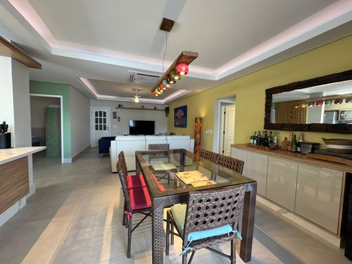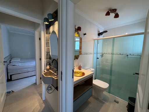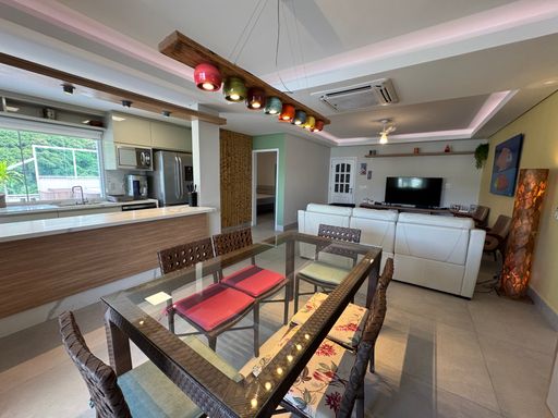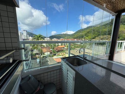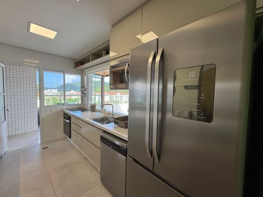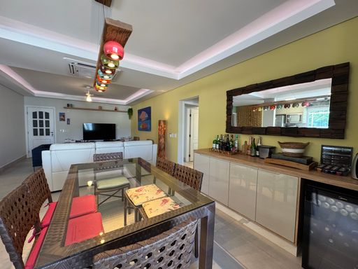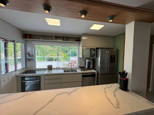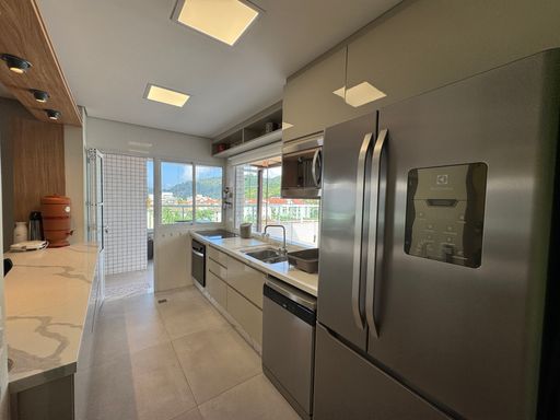 Social & Lazer: Sala em 2 ambientes integrada à cozinha planejada. O destaque? Um espaço gourmet privativo com piscina, perfeito para ver o pôr do sol entre o mar e a montanha.