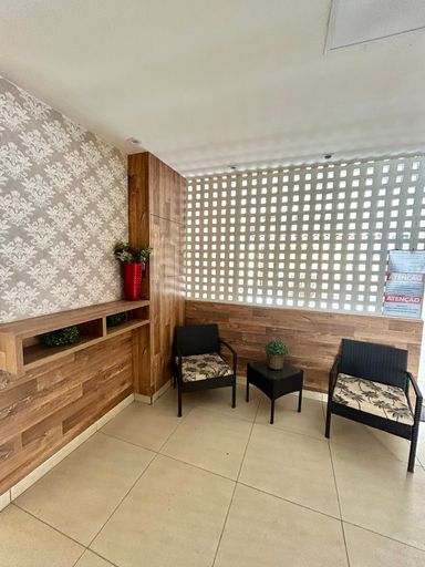 Condomínio e lazer, churrasqueira coletiva, sala de jogos, zeladoria e garagem coberta.