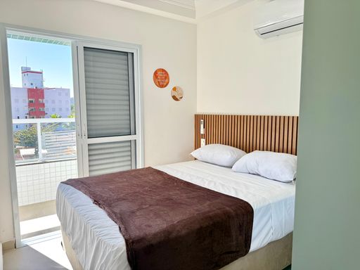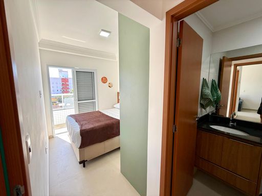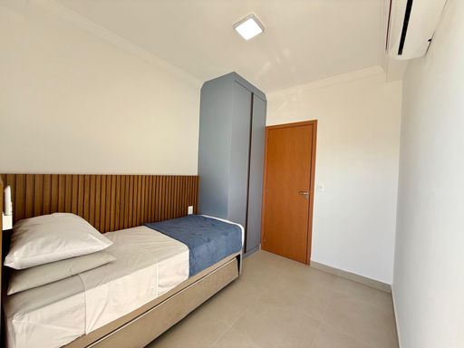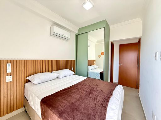2 quartos sendo 1 suíte com armários e ar condicionados, banheiro social.