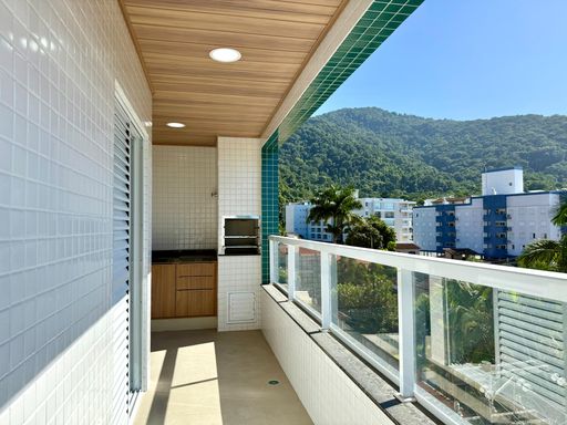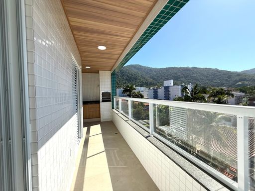 Cozinha integrada com sala jantar e estar e ar condicionado. Varanda gourmet com armários