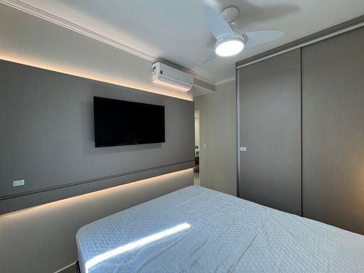 Apartamento à venda Moderno e Sofisticado na Praia das Toninhas, Ubatuba!!! Mobiliado com 2 quartos sendo 1 suíte com armários planejados, ar condicionados, banheiro social com box e iluminação natural.