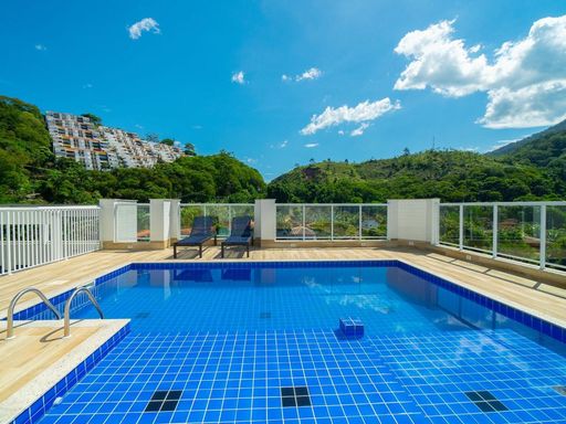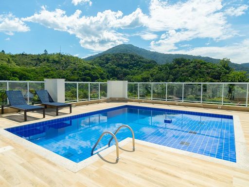 No 5º andar, com vista lateral para o mar e para as montanhas, a apenas 300 metros da praia, este apartamento combina conforto, modernidade e localização privilegiada.