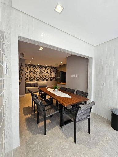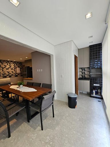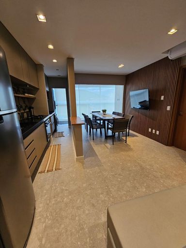 • Sala integrada à cozinha totalmente equipada e planejada, com ar-condicionado que atende ambos os ambientes