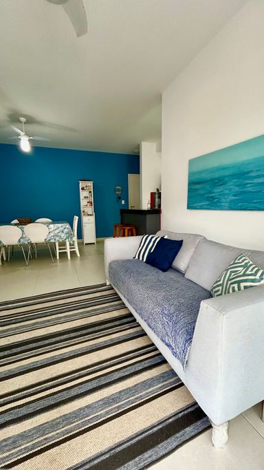 Apartamento amplo com 75m² distribuídos em 2 quartos sendo 1 suíte, sala em 2 ambientes, sacada com churrasqueira, cozinha america com armários, área de serviço.