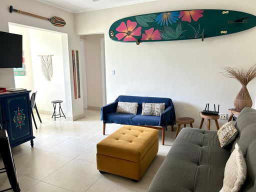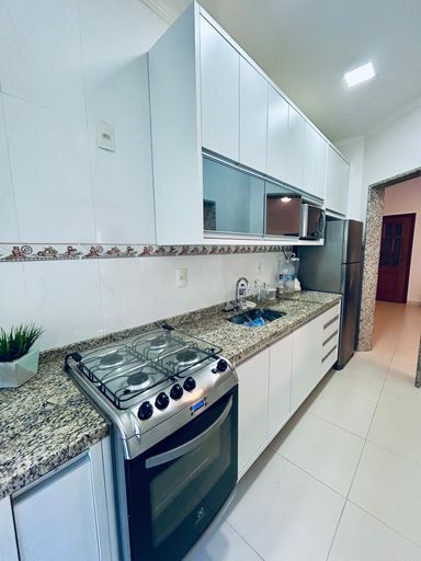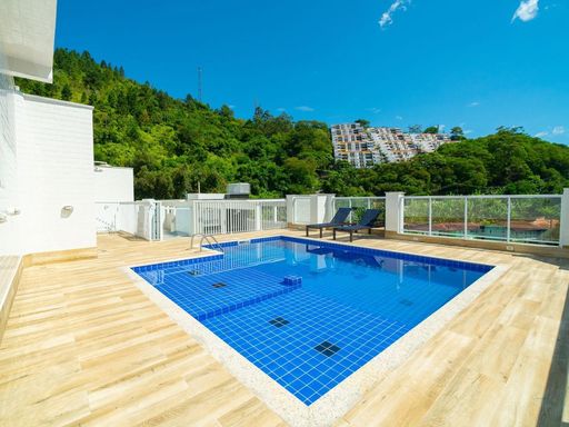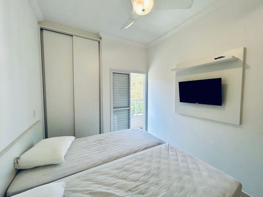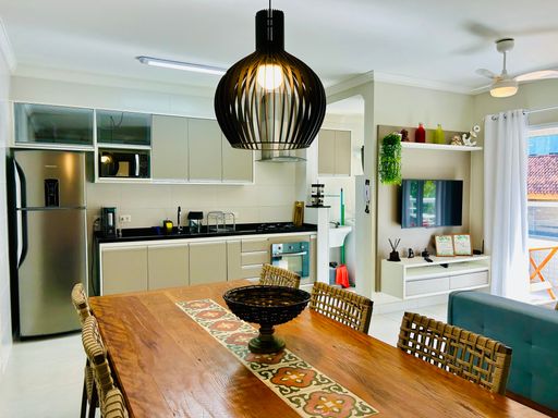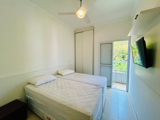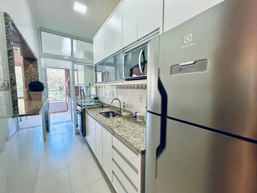 Apartamento amplo com 90m², vista para serra, sol da manhã, duas vagas de garagem, 2 quartos sendo um suíte com armários e ventiladores de teto, sala em 2 ambientes com ventiladores de teto, cozinha com armários, área de serviço com armários, sacada com linda vista para montanha.