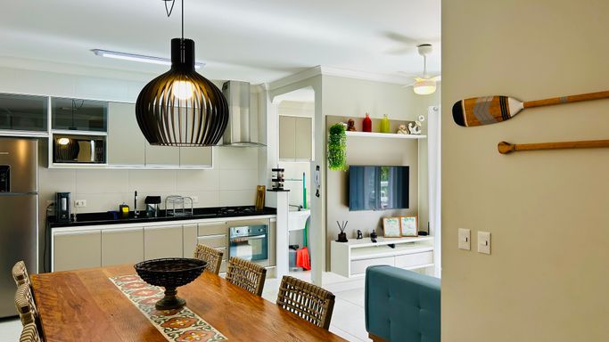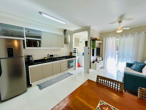 Um charme de apartamento à venda na Praia das Toninhas. 3 quartos sendo 1 suíte com armários planejados, ar condicionados, sala em 2 ambientes, cozinha integrada com armários planejados, área de serviço. Sacada e Churrasqueira.